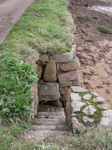 Vue d'un petit escalier communal de descente à la grèveImmatriculation