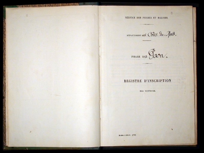 Registre d'inscription du phare du Paon (Ponts et Chaussées, DDE 22, collection particulière)Immatriculation