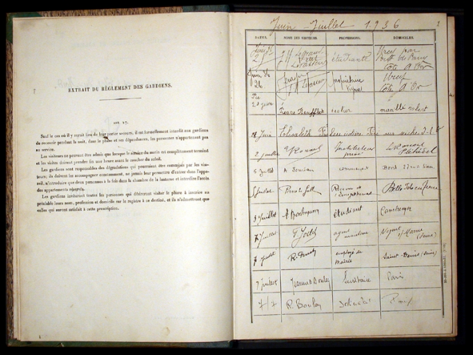 Registre d'inscription du phare du Paon pour l'année 1936 (Ponts et Chaussées, DDE 22, collection particulière)Immatriculation