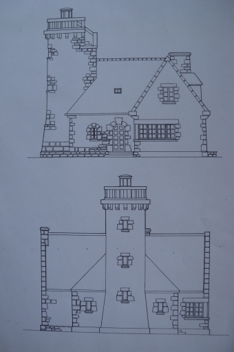 Dessin face postérieure et antérieure : le phare du Rosédo (Fichou, collection particulière)Immatriculation
