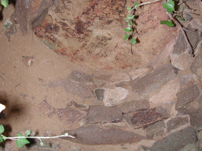 Vue intérieure du dôme en pierre (granite et schiste) et torchis en terre et bouse de vacheImmatriculation