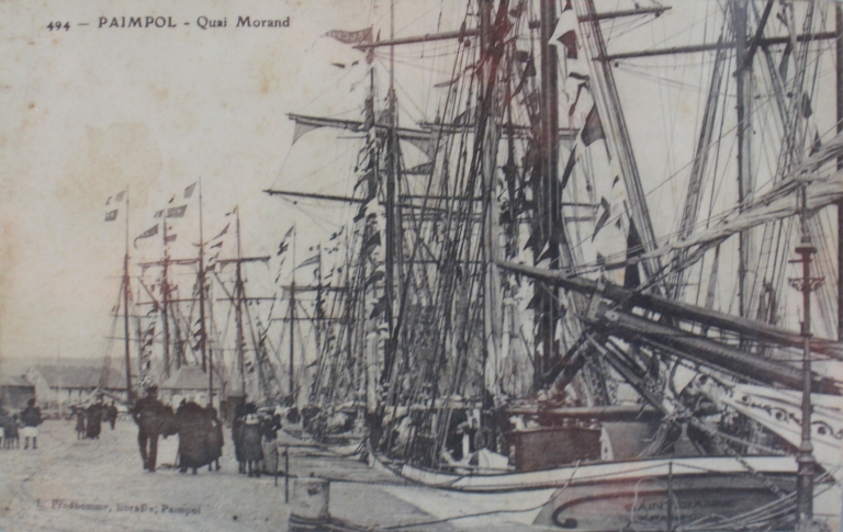 Les goélettes dans le bassin de Paimpol, quai Morand, dont 'Alcyon' (P7) et 'Sainte-Anne' (P12), en 1914 (carte postale, collection particulière)Immatriculation