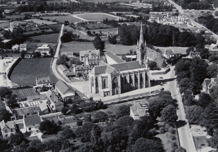 L'église Notre-Dame-de-Bonne Nouvelle dans son environnement, 1954 (Fonds Henrard, AD 22)Immatriculation