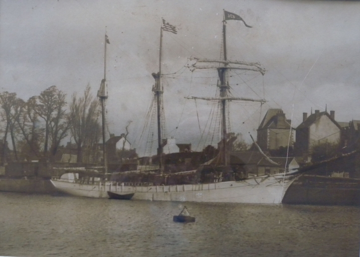 Vue du trois mâts 'Achille' devant le quai de Kernoa, propriété de l'armateur Jean-François Dauphin, 1er quart 20ème siècle (collection particulière)Immatriculation
