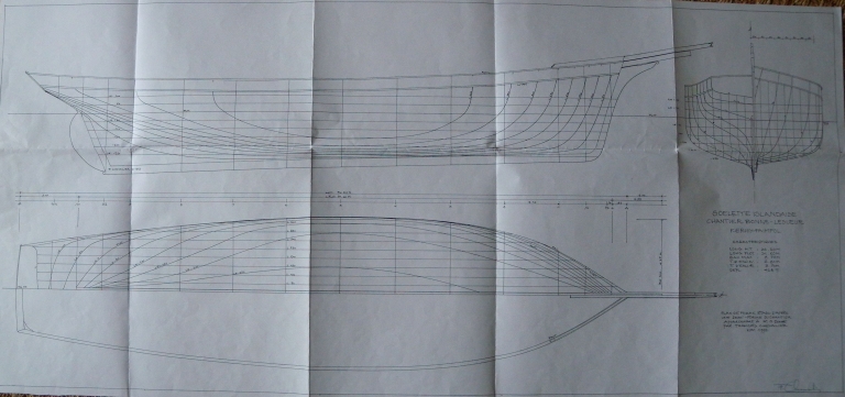 Reproduction d'un plan de forme d'une goélette d'Islande construite par le chantier Bonne-Lesueur, 1er quart 20ème siècle (collection particulière, François Chevalier, 1995)Immatriculation