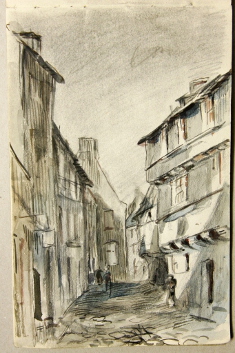 Dessin au crayon et fusain de L.M. Faudacq : une rue de Paimpol, 4ème quart 19ème siècle (extrait des carnets de Faudacq, collection particulière)Immatriculation