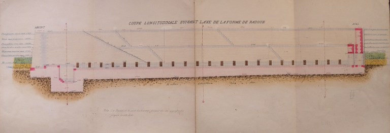 Plan : coupe longitudinale de la forme de radoub, 1883 (AD 22)Immatriculation