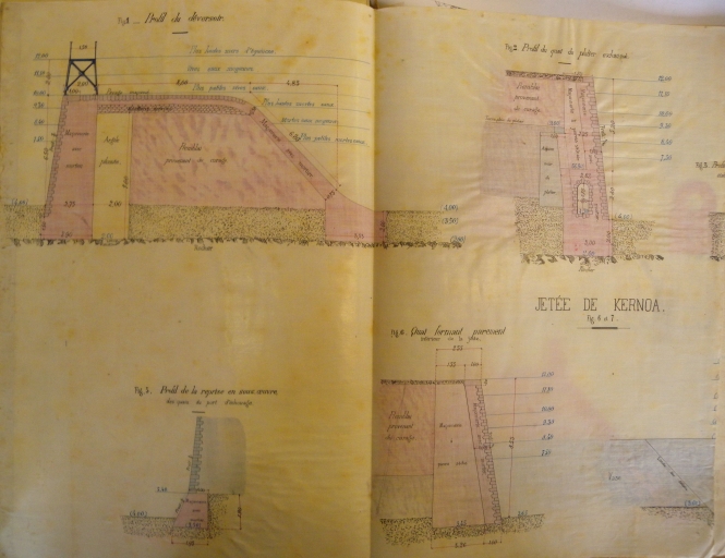 Plan : profil en travers du déversoir et de la jetée de Kernoa, 1895 (AD 22)Immatriculation