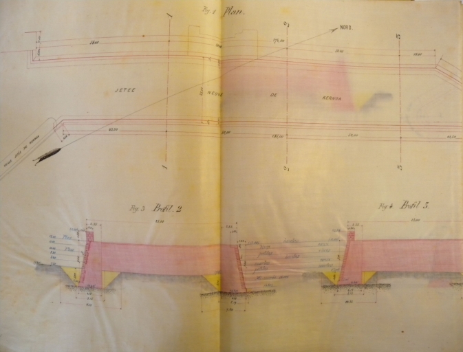 Plan et profils de la jetée neuve de Kernoa, 1893 (AD 22)Immatriculation