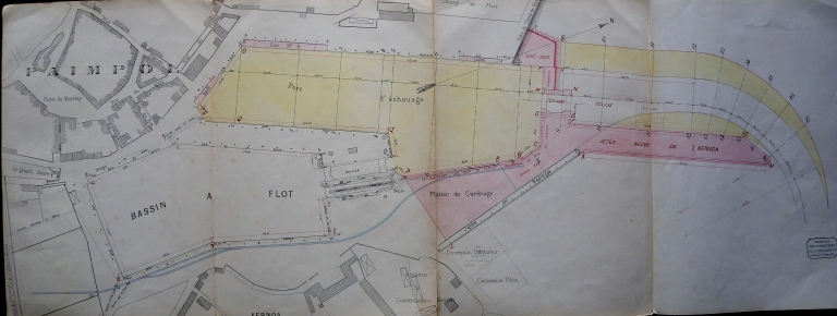 Plan du port de Paimpol en 1893 : projet d'agrandissement du bassin à flot, avec la nouvelle jetée de Kernoa et le bassin d'échouage (AD 22)Immatriculation