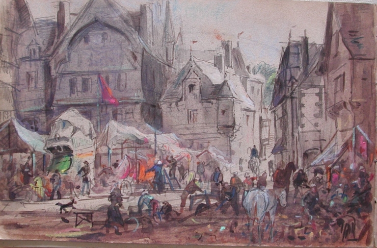 Paimpol, le Centre-Ville. La place du Martray, dessin de Louis-Marie Faudacq (collection particulière)Immatriculation