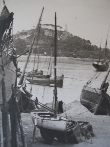 Bateaux de pêche et de plaisance à l'échouage dans l'avant-port d'échouage, devant la cale de Bréhat, 1er quart 20ème siècle ((carte postale, collection particulière)Immatriculation