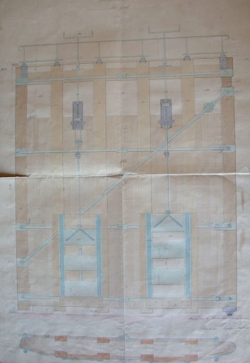 Dessin : élévation d'un vantail de la 1ère écluse, face amont, 1875 (AD 22)Immatriculation