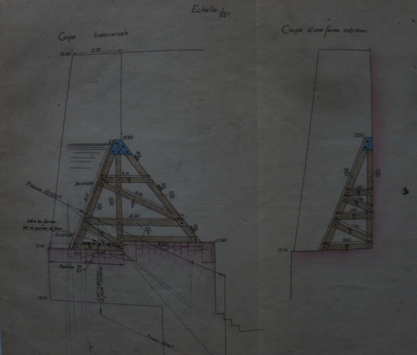 Dessin, coupe des fermes du batardeau pour la forme de radoub en 1924 (AD 22)Immatriculation