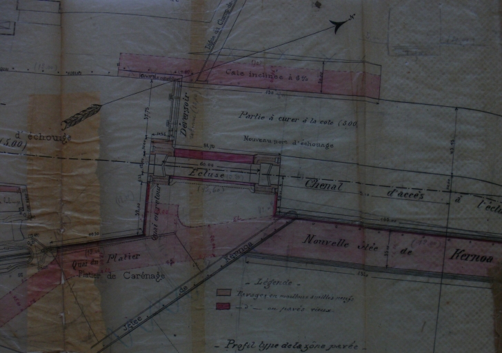 Plan des aménagements du port de Paimpol en 1898, avec la situation du déversoir (AD 22)Immatriculation