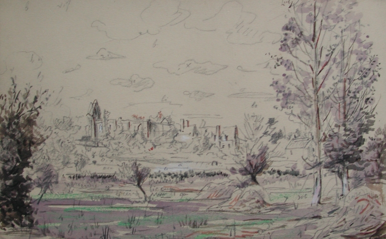 Dessin aquarellé de Faudacq : vue du front de mer de l'abbaye de Beauport, fin 19ème siècle (collection particulière)Immatriculation