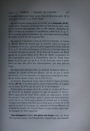 Dans : 'Pilote côtier, Côtes Nord de la France, troisième partie : Des Héaux de Bréhat au cap de la Hague' /Thomassin, Anastase, Paris : Challamel aîné, 1875, p. 217.Ouvrage imprimé.