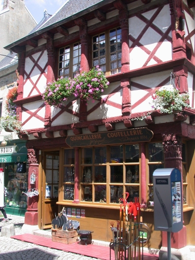 Vue de la façade à colombage du 17ème siècle du commerce JézéquelImmatriculation