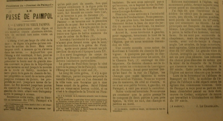 Extrait du 'Journal de Paimpol', 1er trimestre 1897 : 'Le passé de Paimpol' par Jules Le Chapelain, descriptif de la place du Martray ('Archives, 'La Presse d'Armor', collection particulière)Immatriculation