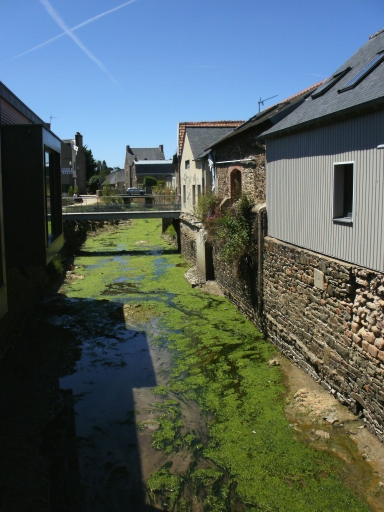 Vue du cours d'eau du Quinic avec les différents ponts et passerelles qui le traversentImmatriculation