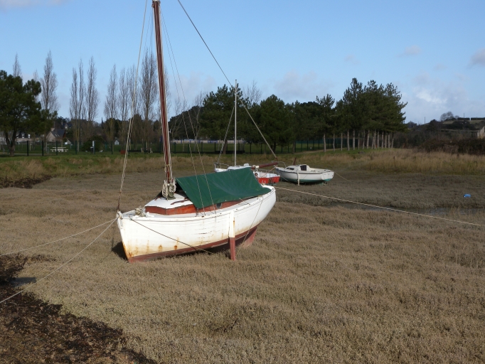 Vue d'un bateau traditionnel de Carantec à l'échouage dans le petit marais de PoulafretImmatriculation