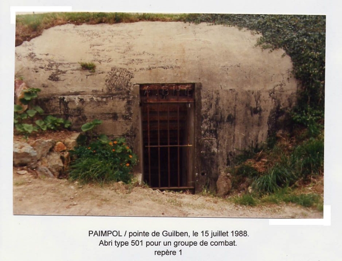 Abri type 501 pour groupe de combat, repère n° 1, 15 juillet 1988 (carte, Alain Bohée, collection particulière)Immatriculation
