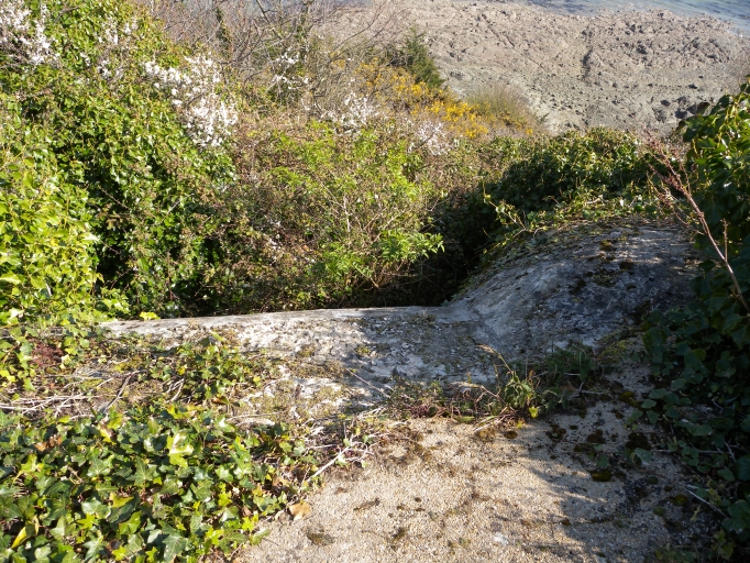 Vue de l'embrasure Ouest du 3ème blockhaus repéré (ouvrage dit 'actif')Immatriculation