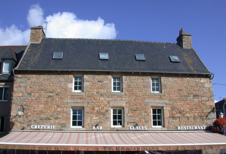 Vue de la façade principale de la crêperie Morel, plus vieille maison de la place du Martray, datable du 15ème siècleImmatriculation