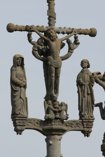 Face ouest, au centre de la plate-forme : Crucifixion (Christ en croix avec anges recueillant le sang et la Vierge et saint Jean sur la traverse)Immatriculation