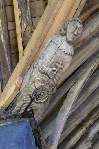 Intérieur : croisée du transept, angle sud-est, blochet sculpté.Immatriculation