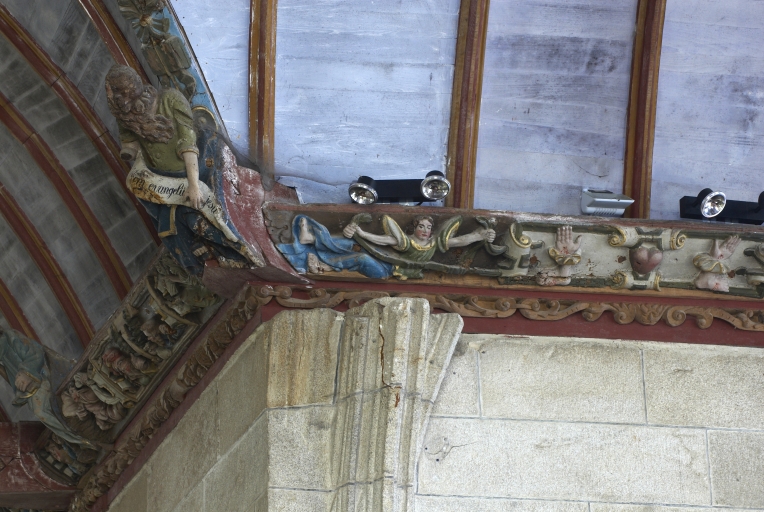 Intérieur, mur nord du choeur, détail de la sablière et du blochetImmatriculation