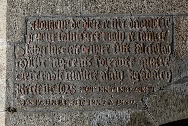 Détail de l'nscription à l'entrée du bras sud, près de la porte de la sacristieImmatriculation
