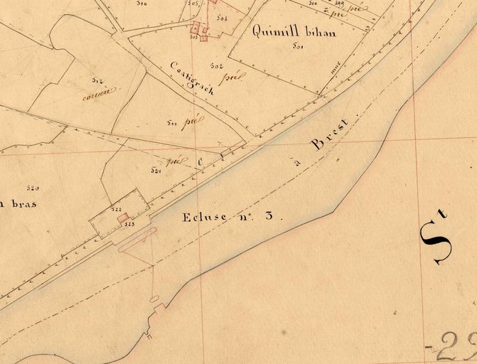 L'écluse sur le cadastre de Châteaulin, en 1847 (A. D. Finistère, 3 P 29/2 - 1847)Immatriculation