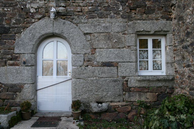 Ancienne métairie, façade sud-est, détail de la porte et de la fenêtreImmatriculation