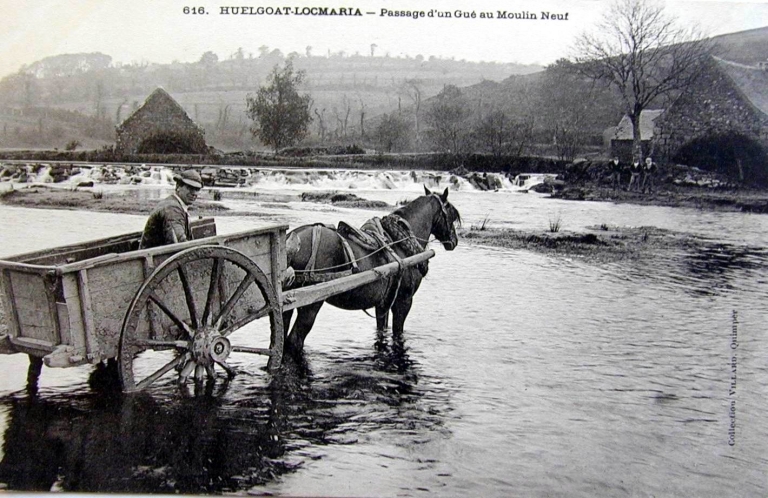 Passage d'un gué au moulin Neuf, carte postale ancienne vers 1900 (A. D. Finistère, 2 Fi 129)Immatriculation
