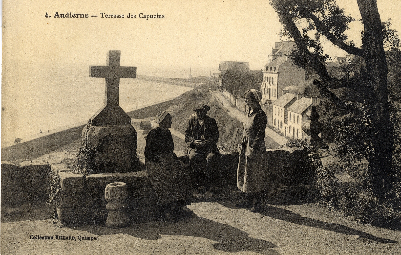 Croix sur une terrasse du couvent des Capucins vers 1900, vue rapprochée prise du nord. (Repro carte postale Villard)Immatriculation