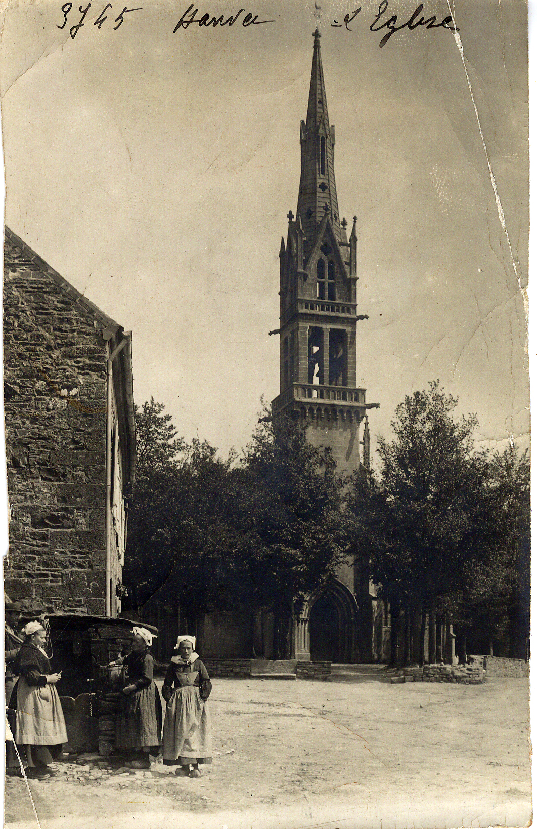 Place de l'église, vers 1900. Fonds photographique Villard (SDAP du Finistère)Immatriculation