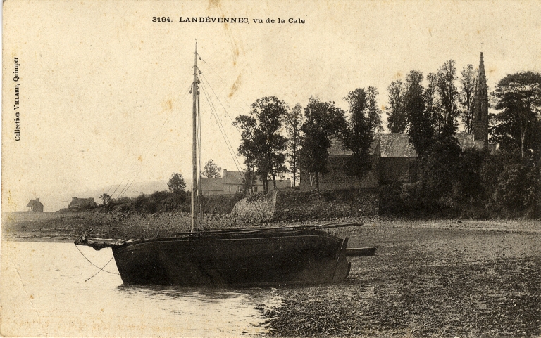 Vue nord de l'église et grève, vers 1900 (fonds Villard)Immatriculation