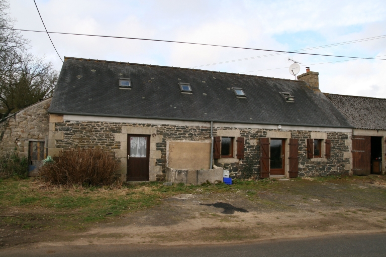Ty Nevez. Ancienne ferme en bordure de route, 3e quart 19e siècle. Vue générale est. Section D1 parcelle 144.Immatriculation