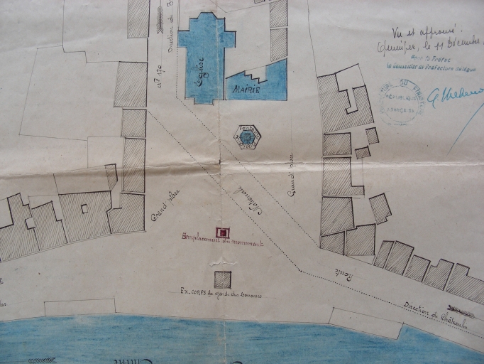 Plan de la place et l'emplacement d'origine du monument aux morts, 1924 (Archives municipales de Port-Launay)Immatriculation