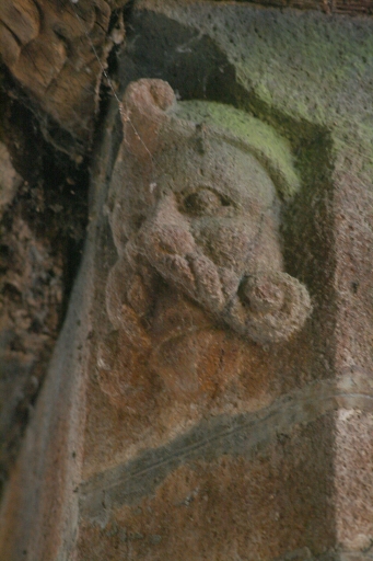 Intérieur : croisée du transept, angle nord-ouest, tête sculptée.Immatriculation