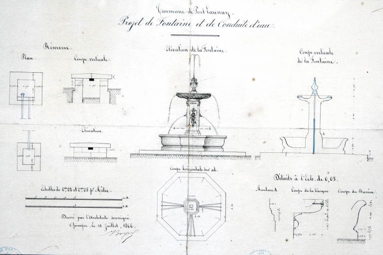 Projet de la fontaine et de la conduite d'eau, par l'architecte Jules Boyer, 1866 (Archives municipales de Port-Launay)Immatriculation