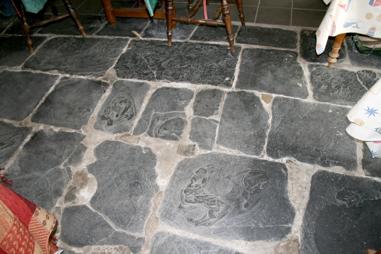 Rez-de-chaussée, pièce nord, sol couvert de dalles de schisteImmatriculation
