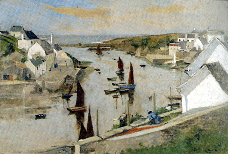 Peinture de Raymond Wintz, Vue du port de Doëlan, 1926, avec le quai de Kernabat sur la gaucheImmatriculation
