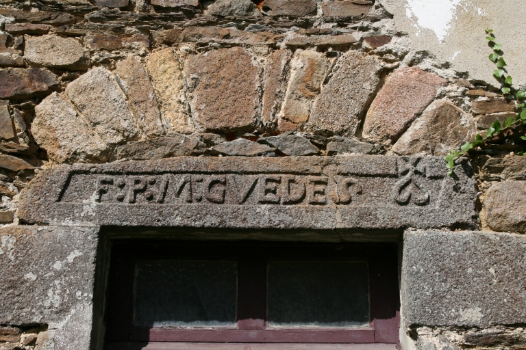 Traon Izella. Détail du linteau de la porte d'entrée : F : P : M : GVEDES. Section ZA parcelle 3Immatriculation