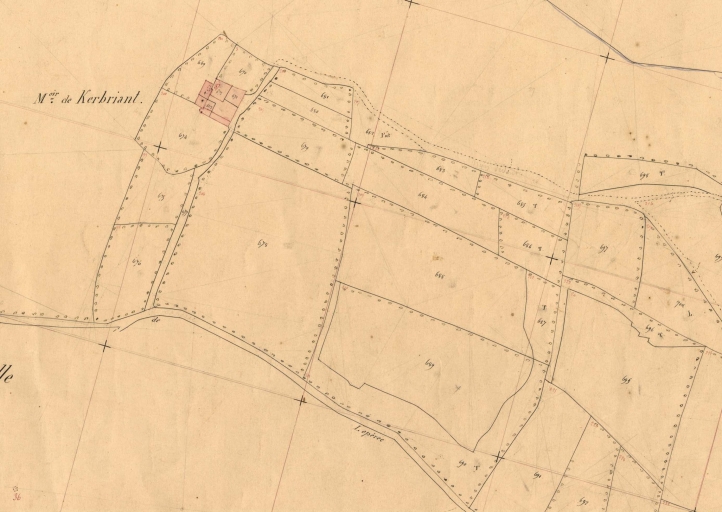 Manoir de Kerbriant. Extrait du cadastre de 1847, section B3 (A.D. 29, série 3P 265)Immatriculation