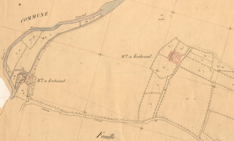 Manoir et moulin de Kerbriant. Extrait du cadastre de 1847, section B3 (A.D. 29, série 3P 265)Immatriculation