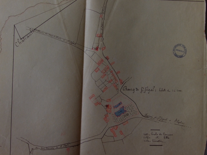 Plan du bourg de Saint-Ségal, 1887 (A. D. 29, série 2 O 1878)Immatriculation
