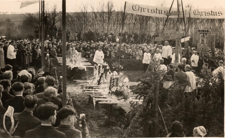 Restauration de la croix du Rest, vers 1950 ? (collection particulière)Immatriculation
