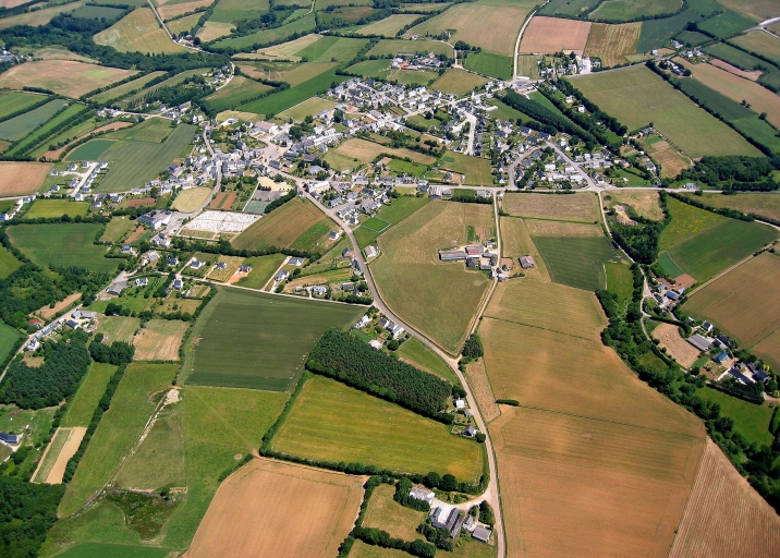 Vue aérienne du bourg et des lotissements vers le nord, 2005 (photo Paraflash).Immatriculation
